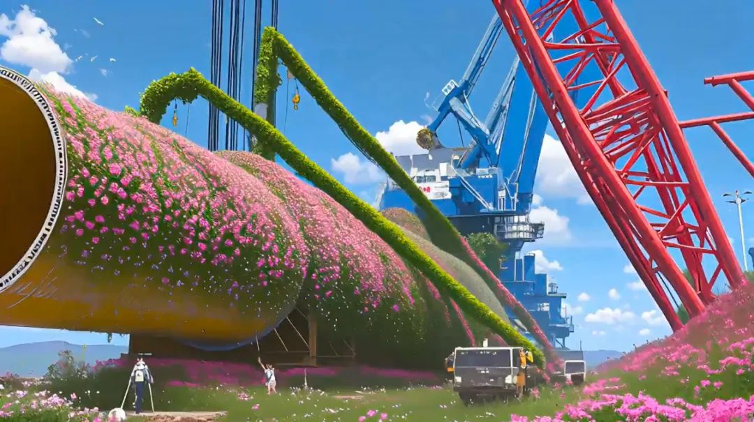 花蕊點(diǎn)綴在倉(cāng)庫(kù)的縫隙間