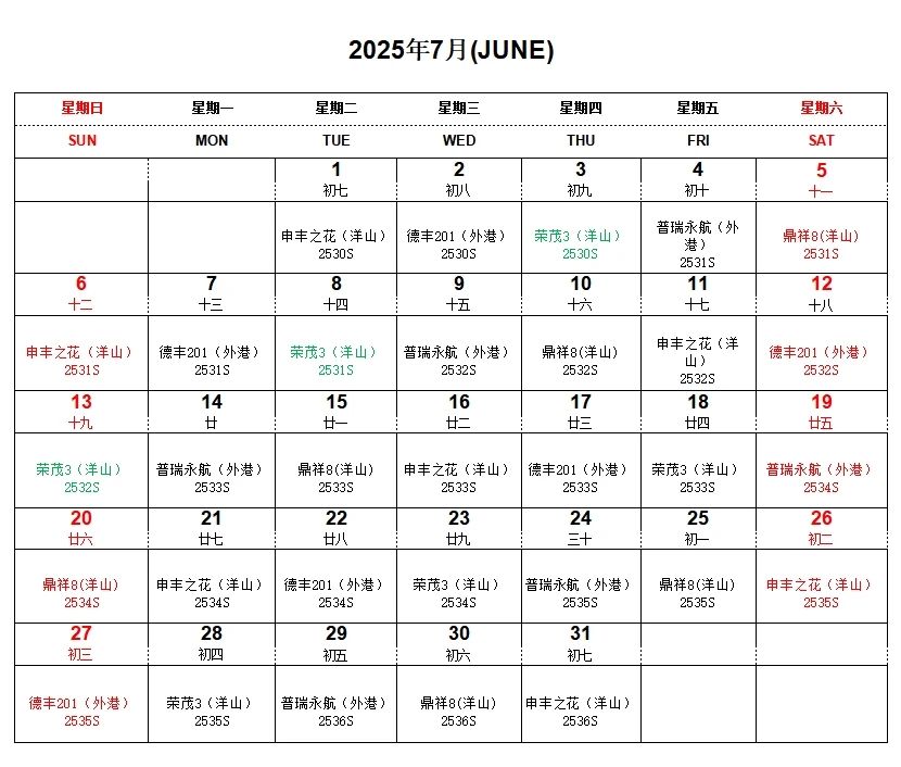 “滬鹽專(zhuān)線”7月船期表已經(jīng)新鮮出爐!