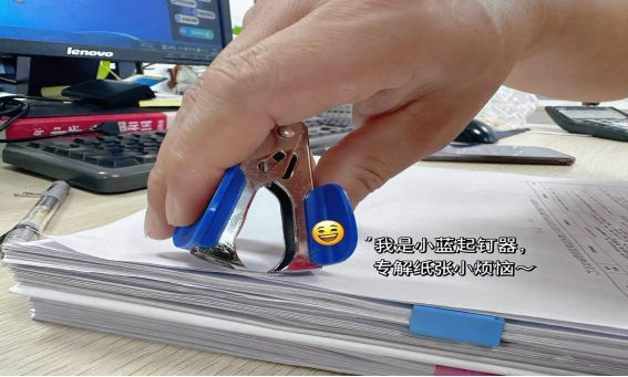 我是那把總被按在文件上的起釘器。你路過工位時(shí),定會(huì)瞧見我被反復(fù)捏在掌心,將厚厚一摞文件上的訂書釘一個(gè)個(gè)撬起。那些被我“解救”出來的紙張,反面還能用來打印草稿、記錄臨時(shí)數(shù)據(jù),甚至當(dāng)作便簽傳遞簡單信息。這周,綜合部用我拆了幾摞舊文件,回收的紙張不僅省去了兩包A4紙的采購,還減少了廢紙?zhí)幚砹俊?/p>
