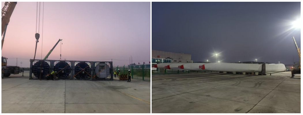 “百日攻堅”號角吹響以來,鹽城港保稅物流中心主動聚焦重大件貨物物流服務(wù)痛點難點,將風電葉片入庫作業(yè)列為重點攻堅任務(wù)。籌備階段,中心組建專項攻堅小組,綜合研判運輸銜接、場地調(diào)度、機械適配等多維度因素,制定“一貨一策”詳盡作業(yè)方案,對流程節(jié)點逐一梳理、閉環(huán)解決;同步協(xié)調(diào)管委會、海關(guān)等職能部門,針對風電葉片運輸?shù)缆吠ㄐ行枨?,通過拆除影響通行的路燈等舉措保障道路通暢,進一步優(yōu)化作業(yè)保障體系;搭建分工明確、協(xié)同高效的作業(yè)團隊,提供全程精細化服務(wù)。針對風電葉片“超長、超重”的特性,中心專項開展安全操作集中培訓(xùn),明確崗位職責、規(guī)范統(tǒng)一指揮流程,強化安全技術(shù)交底與風險點辨識控制,全方位筑牢大件作業(yè)安全防線,以專業(yè)能力為攻堅任務(wù)保駕護航。