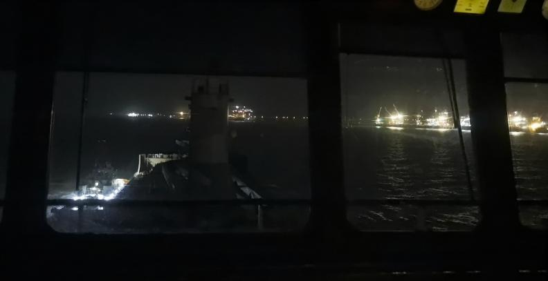 接到求助后,引航站迅速組織專業(yè)團(tuán)隊(duì)趕赴現(xiàn)場(chǎng)。在登輪勘察后,團(tuán)隊(duì)成員綜合研判氣象條件與作業(yè)進(jìn)度,決定待貨物卸載完畢后再擇機(jī)出港。當(dāng)晚22:00,引航員登輪,在拖輪配合下頂風(fēng)浪開(kāi)始引航。面對(duì)復(fù)雜海況,引航員依托豐富經(jīng)驗(yàn)謹(jǐn)慎操縱船舶,通過(guò)實(shí)時(shí)監(jiān)測(cè)風(fēng)浪、科學(xué)規(guī)劃航線,確保船舶以安全航速穩(wěn)步離港。船舶航行途中遭遇突發(fā)陣風(fēng),引航員迅速采取應(yīng)急措施,及時(shí)修正航向,歷經(jīng)數(shù)小時(shí)緊張作業(yè),最終成功將“探界者”輪安全引領(lǐng)至外海避風(fēng)錨地。事后,江蘇鹽城港海融石化碼頭有限公司專程向鹽城港引航站贈(zèng)送錦旗,書(shū)以“排憂解難 保駕護(hù)航”表達(dá)謝意。