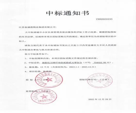 拓市場(chǎng),保增長,項(xiàng)目業(yè)績創(chuàng)一流。實(shí)業(yè)集團(tuán)在提升物業(yè)服務(wù)質(zhì)量、房屋租賃水平,擴(kuò)大鹽城港集團(tuán)“內(nèi)循環(huán)”的同時(shí),逐步向外部市場(chǎng)拓展。1月,黃海港城公司與中天大豐電纜有限公司成功簽訂員工宿舍租賃存量住宅業(yè)務(wù)合同,合同金額近30萬元。物業(yè)公司成功中標(biāo)大中街道城中小區(qū)長效管理及保潔服務(wù),中標(biāo)價(jià)約75萬元。