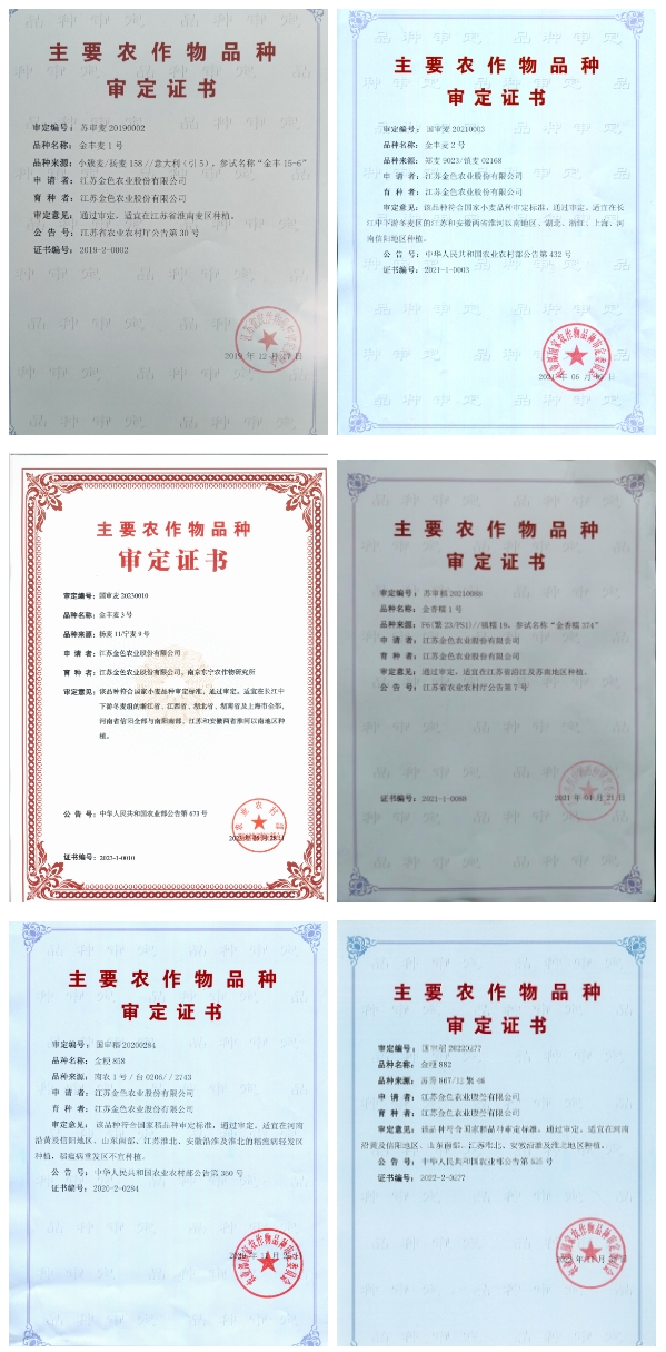 育種是一項(xiàng)復(fù)雜繁瑣的系統(tǒng)性工作,它不僅考驗(yàn)著育種工作者的知識(shí)和經(jīng)驗(yàn),更極大地考驗(yàn)著育種工作者的耐心。作為中國(guó)共產(chǎn)黨員,錢進(jìn)同志研究生畢業(yè)以后毅然來(lái)到農(nóng)業(yè)科研一線,工作中他不斷學(xué)習(xí)先進(jìn)的遺傳育種知識(shí),更在不斷提升自己的科研水平和能力,在他和同事們的工作同努力下,2019年江蘇金色農(nóng)業(yè)股份有限公司自主培育的小麥品種金豐麥1號(hào)通過(guò)江蘇省審定;2020年水稻新品種金粳858通過(guò)國(guó)家審定;2021年自主培育小麥新品種金豐麥2號(hào)通過(guò)國(guó)家審定、水稻新品種金香糯1號(hào)通過(guò)江蘇省審定;2022年水稻新品種金粳882通過(guò)國(guó)家審定;2023年小麥新品種金豐麥3號(hào)通過(guò)國(guó)家審定。